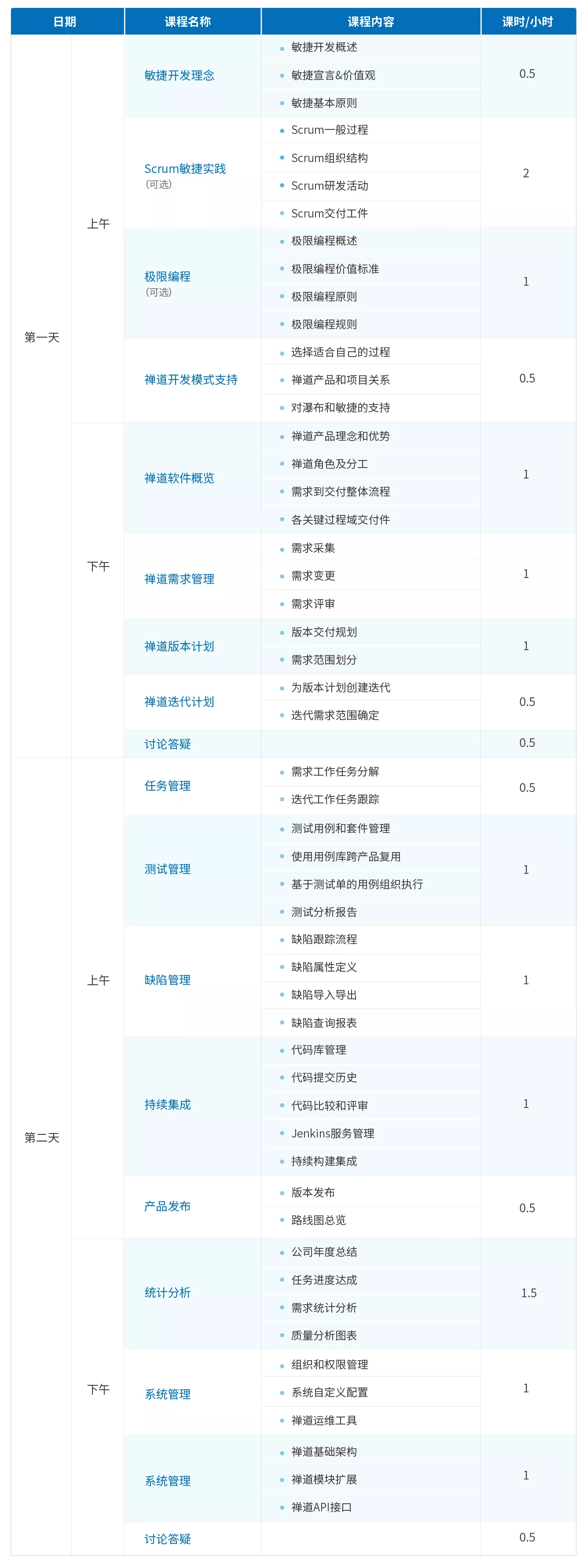 本课程面向软件工程负责人、项目管理者、产品经理、研发团队成员,旨在帮助学员系统地了解敏捷开发的一般过程,全面掌握禅道项目管理软件的特性和使用方法。完成培训后,学员可熟练使用禅道进行日常研发工作的管理,使用禅道持续改进项目管理过程,提升研发质量和生产率,保证交付的客户满意度。