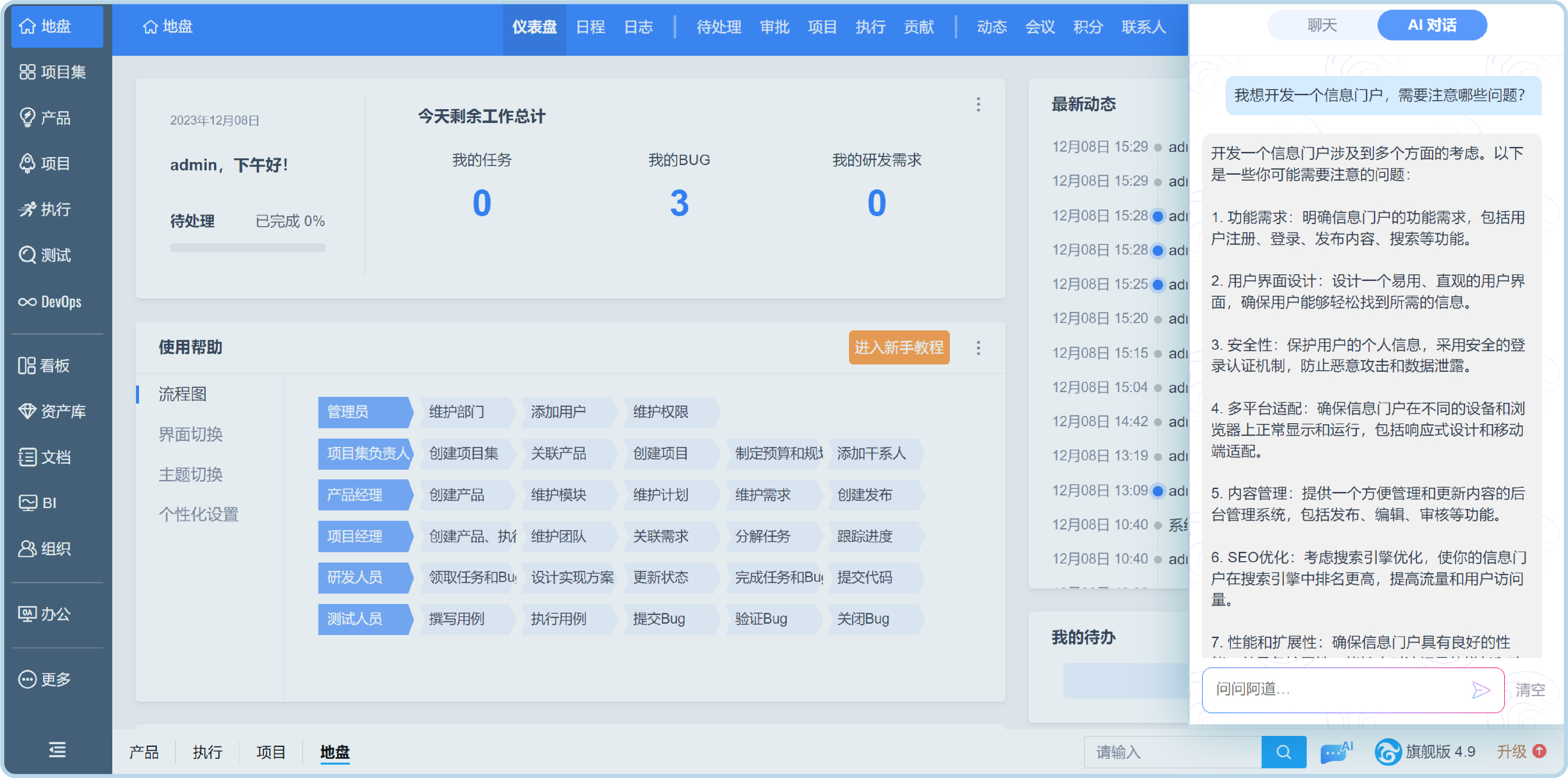 禅道AI功能的推出,不仅能帮用户加快工作进度,优化输出内容,更能帮助用户在工作中节省时间和精力,心无旁骛地进行更高价值的创造性工作。