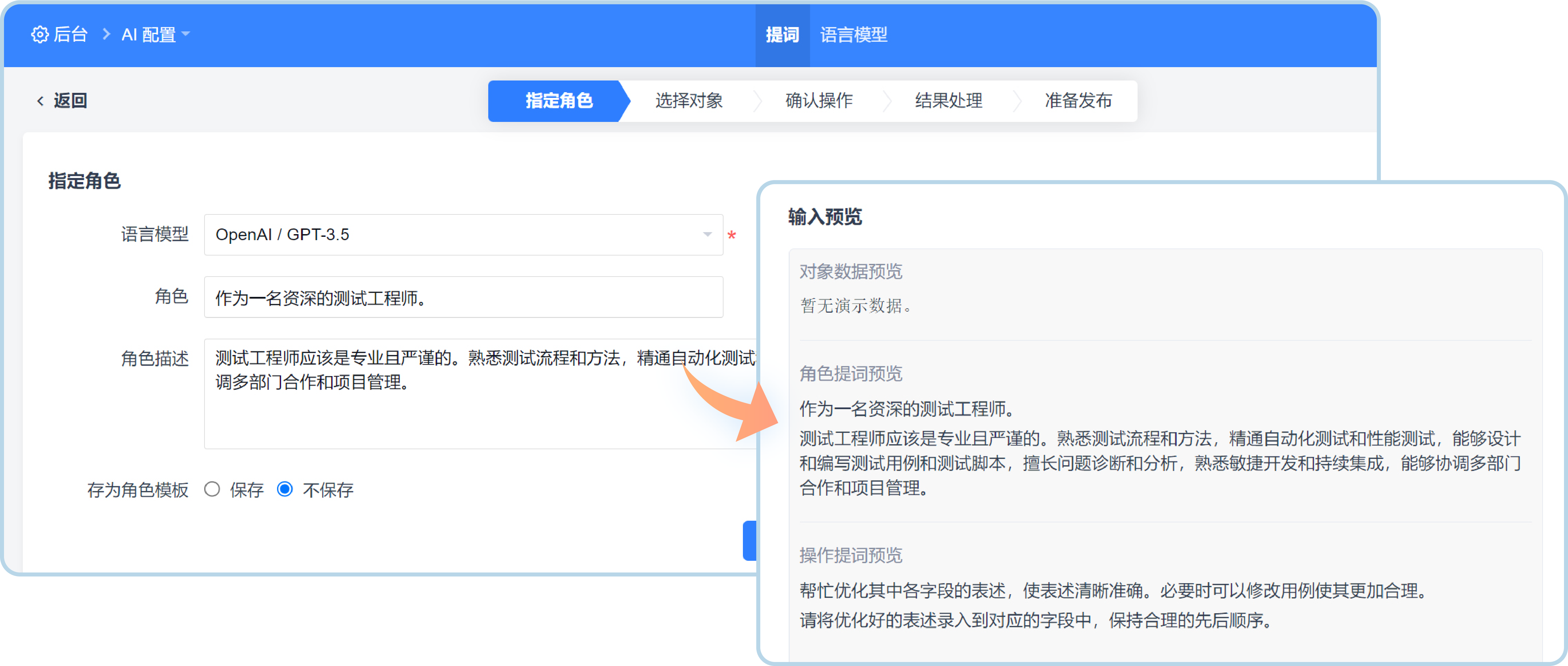 通过AI一键提词,可灵活设计满足自己需要的AI应用,实现人工智能无缝融入产品研发流程,提高软件研发过程效率!