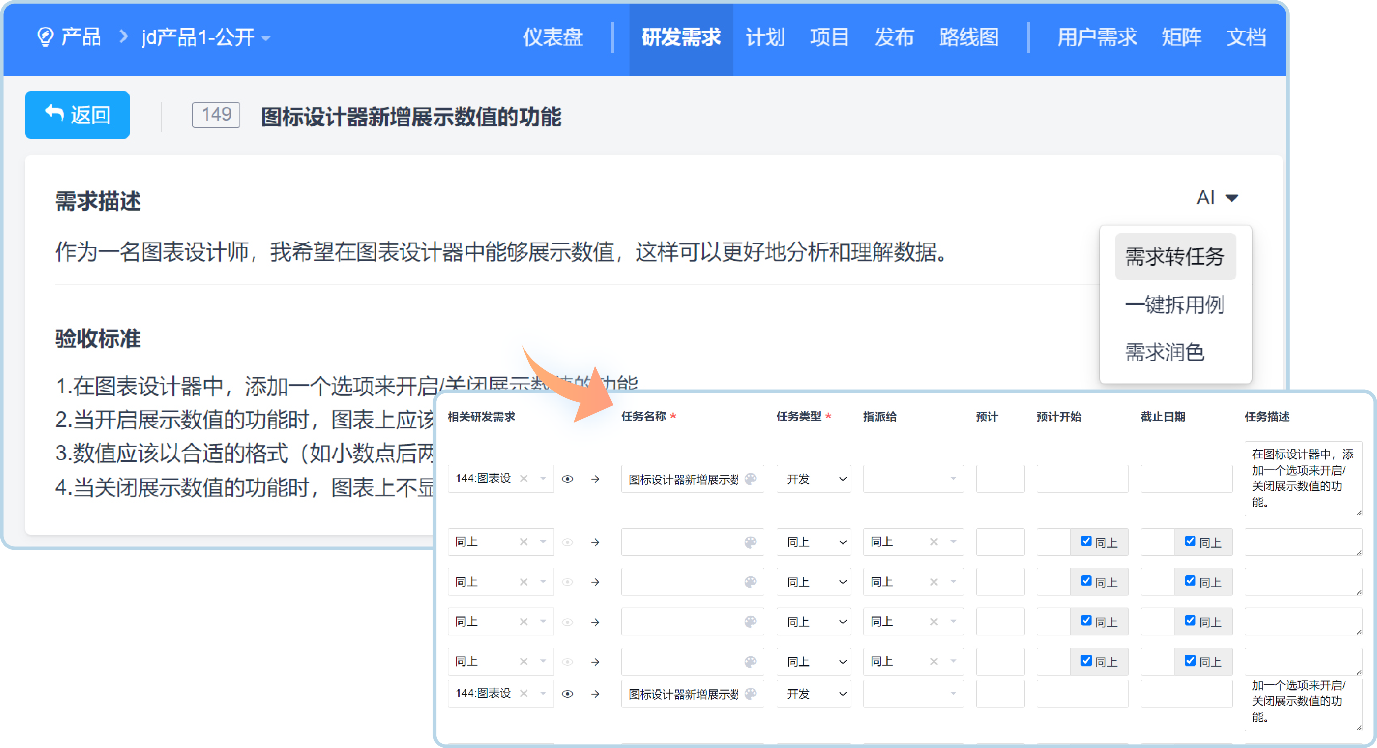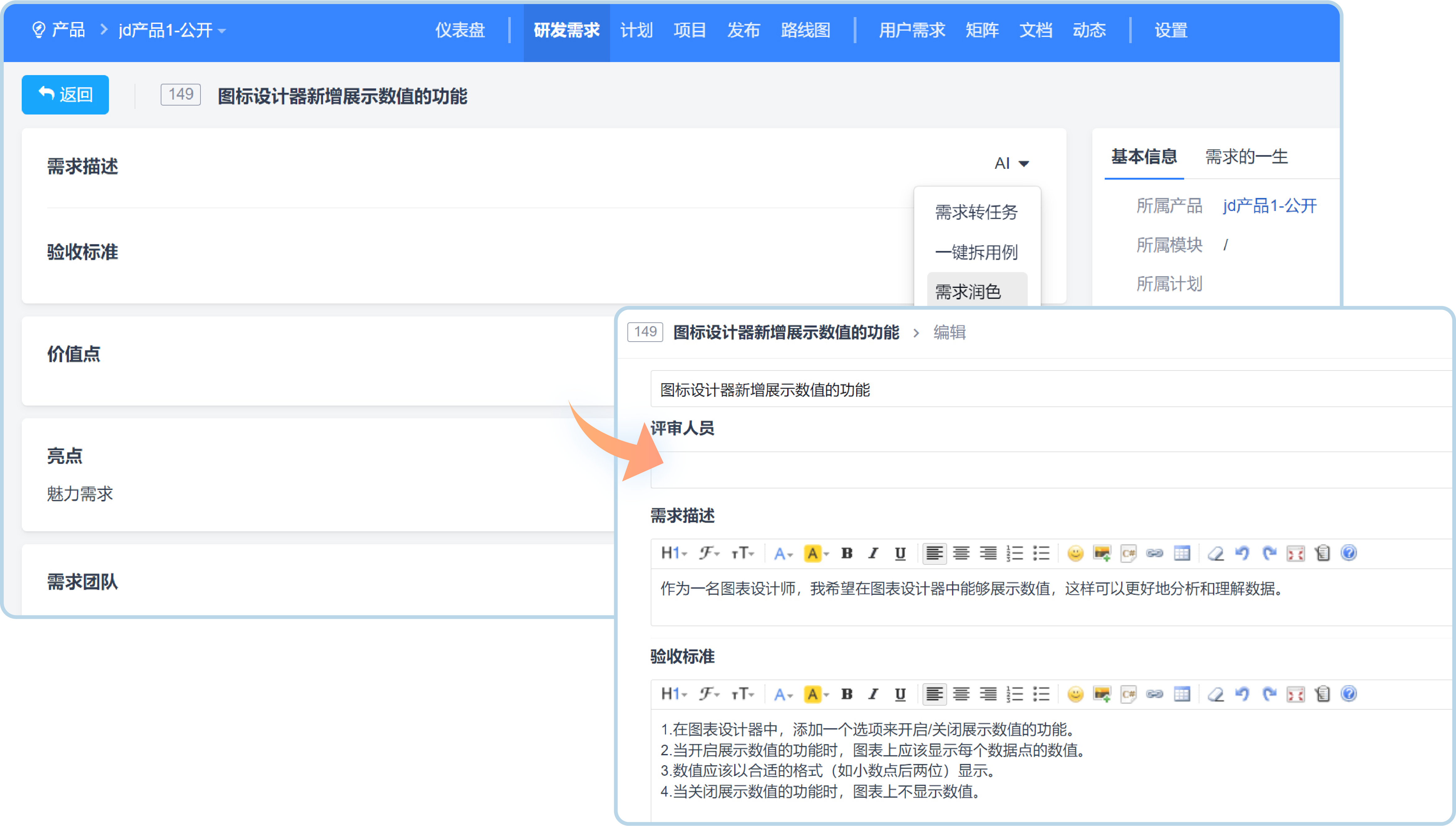 将一句话需求转化为描述完整、内容准确、条例清晰的需求,提高需求澄清效率。