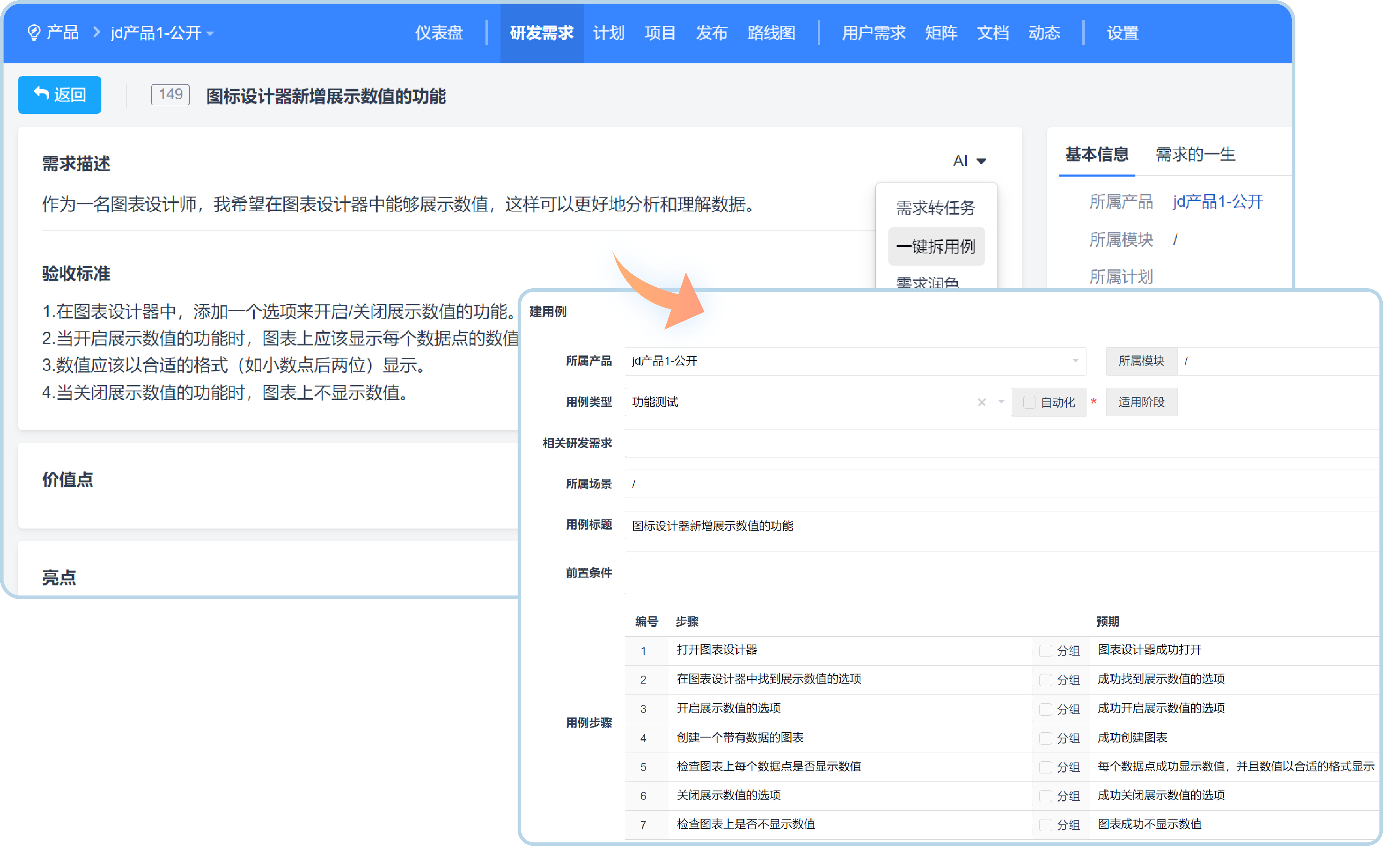 通过一键拆用例,自动识别并生成对应的用例标题,大幅提升工作效率。