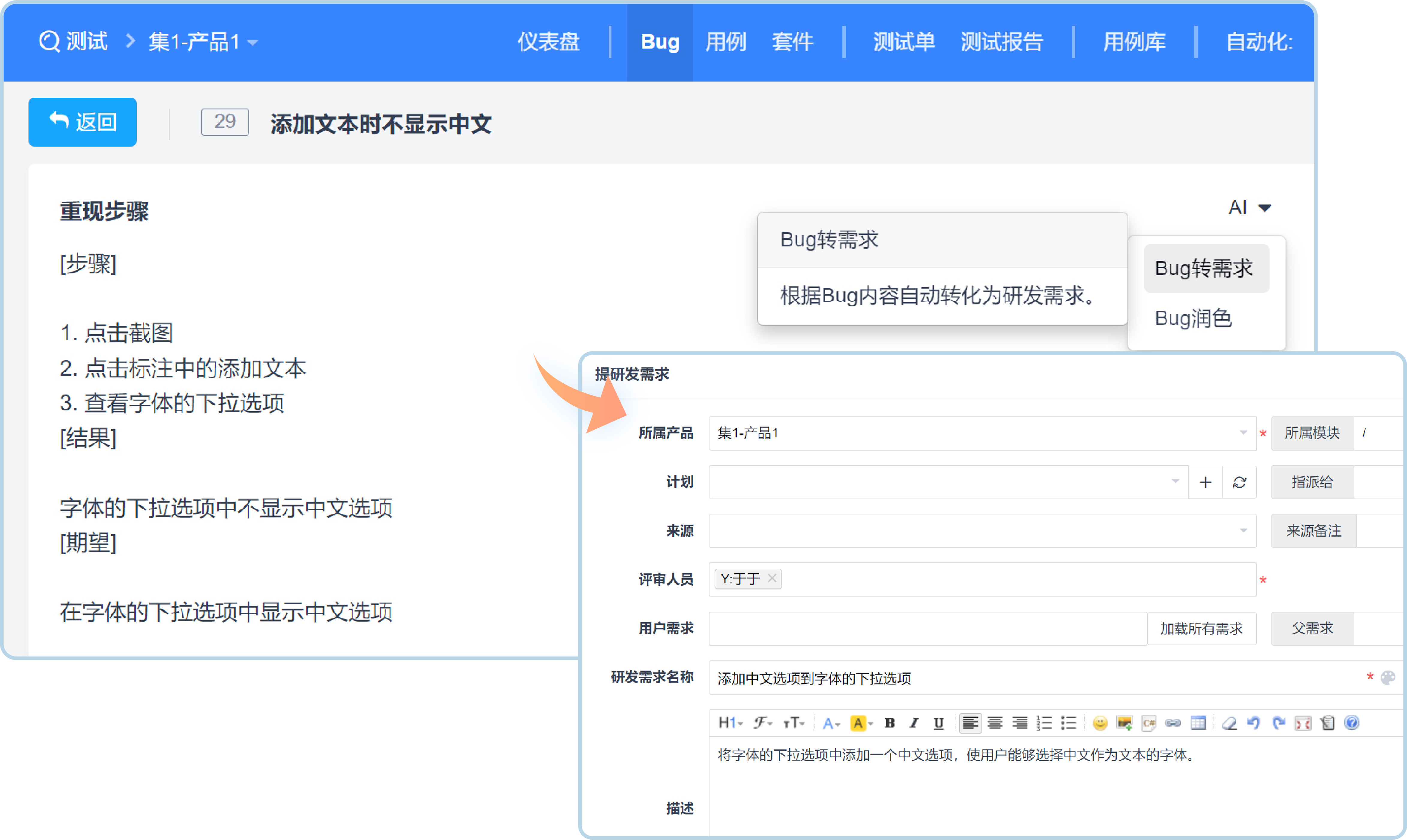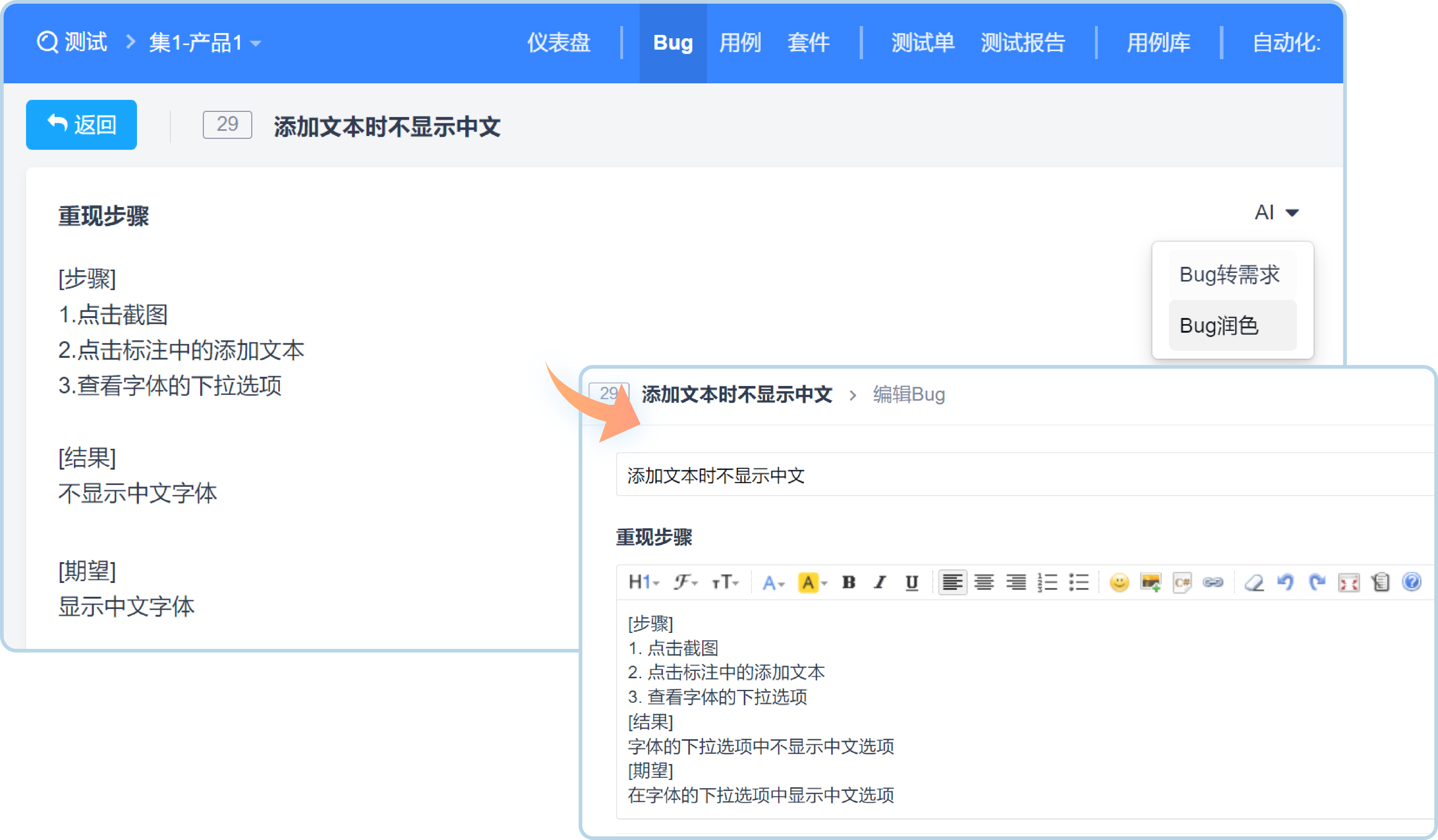 将Bug描述一键转为规范、清晰的需求描述,更好地管理用户的需求与期望。