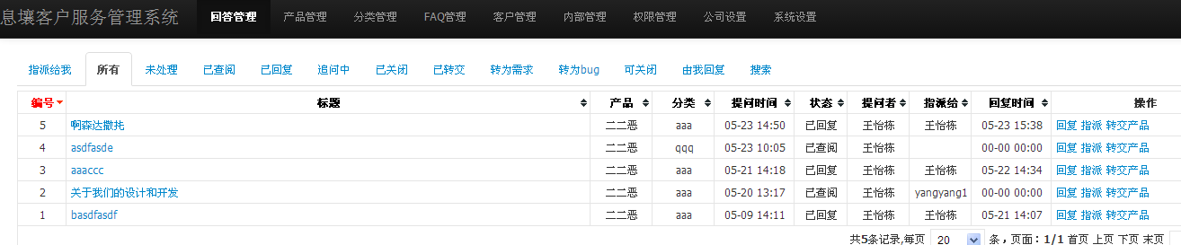 1、登录后台,首先进入的是后台问题浏览页面;