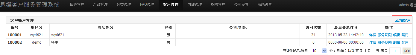 点击添加客户,添加客户后,客户就可以在前台登录;