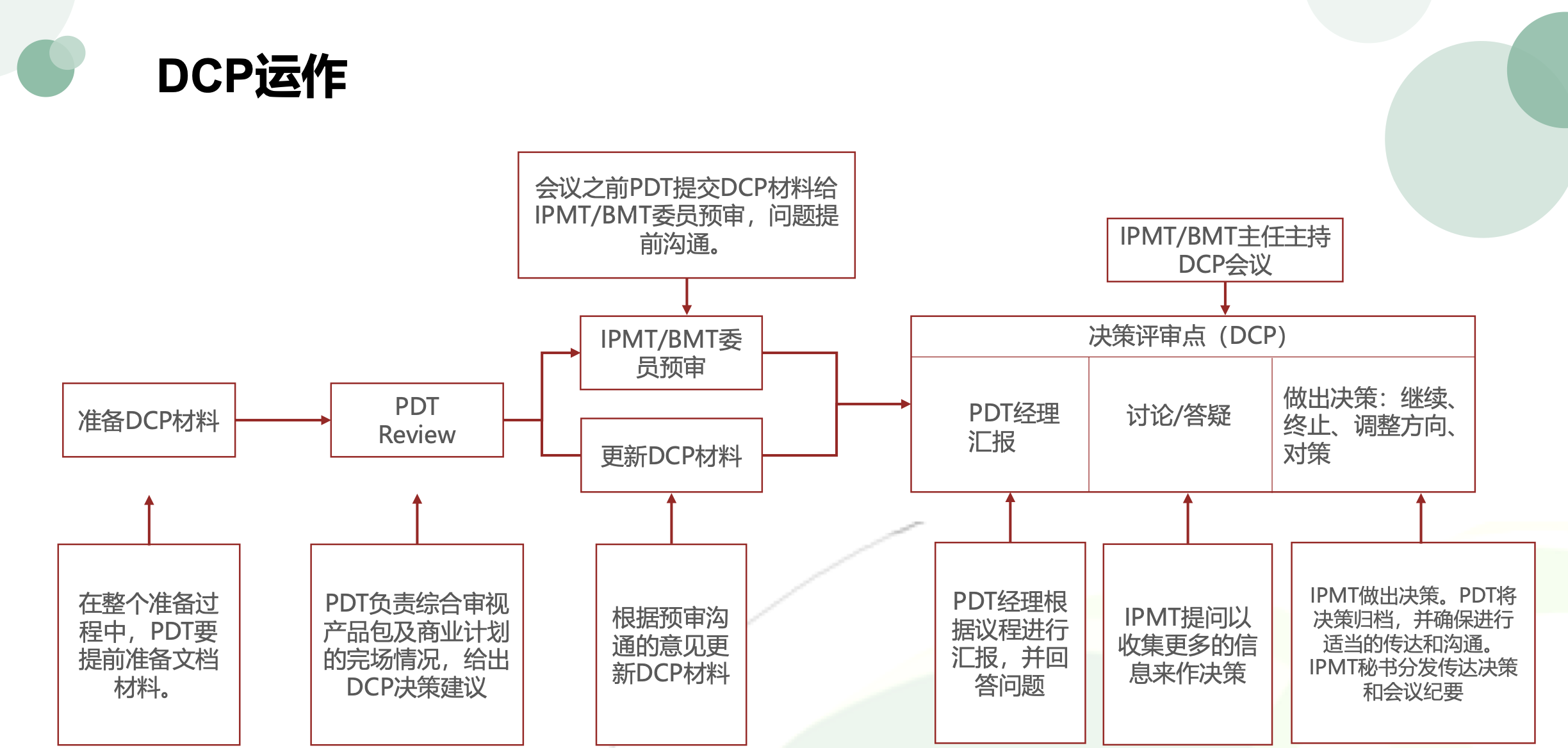 · 决策建议:基于审查结果,PDT应提出针对DCP的决策建议,包括是否继续开发、是否需要调整方向或资源分配等。