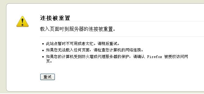 同事反馈 使用过程中,经常会出现“连接被重置”,不能访问的情况已解决