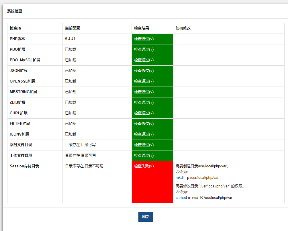 lnmp环境,安装遇到以下问题,php.ini里面的session.save_path 已修改成 session.save_path = "/usr/local/php/var" 之后提示以下错误,/usr/local/php/var 这个目录是已经存在的,而且 chmod o=rwx -R /usr/local/php/var 命令也执行了给了权限了。但依然报错,求教。