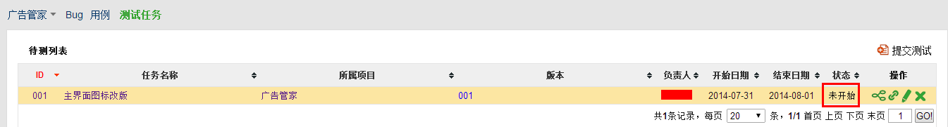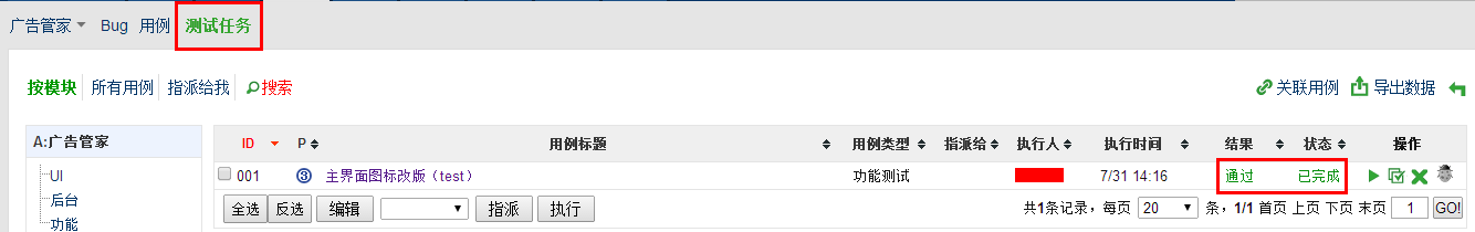石洋洋2014-07-31 17:06:45 用例应该在测试-测试任务中分配指派人和执行,测试任务的状态是需要手动维护的。 |