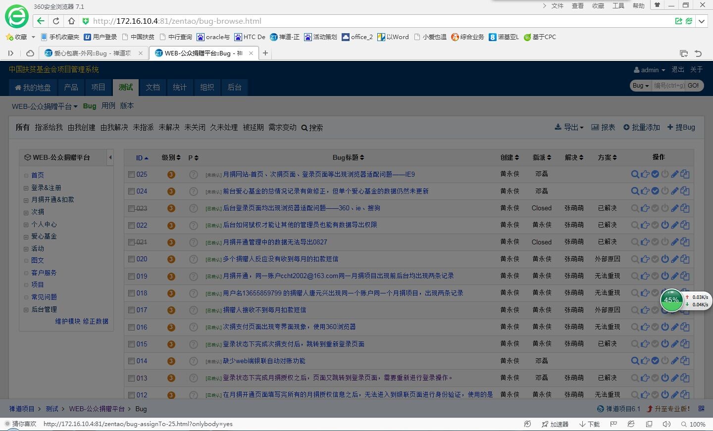 在测试页面项目条目右侧点击“指派”操作,无法弹出相应的对话框。一直是黑屏状态,如下图。谢谢。