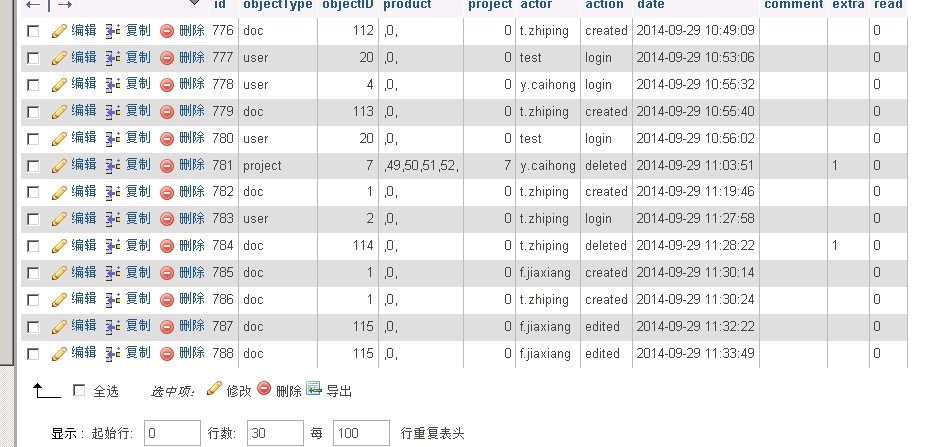 察看数据库里面: bojectID=113 112 是我在数据库中手动修改的,然后再显示正常,其他的创建文档都是 objectID=1,其他删除和编辑文档正常