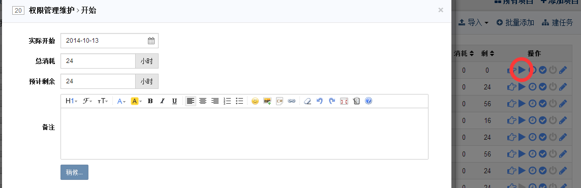 项目->任务下的开始按钮不能保存,一直显示“稍后...”却没有反应了