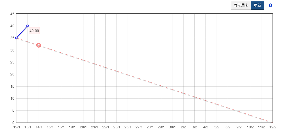 石洋洋2015/01/13 任务的分解尽量在一天内完成(如果一天完成不了可以设置一下项目的开始时间,项目开始第一天保证所有任务都分解完成),后续任务就不应该再增加了,这样燃尽图显示就比较理想了。 🦌 |
