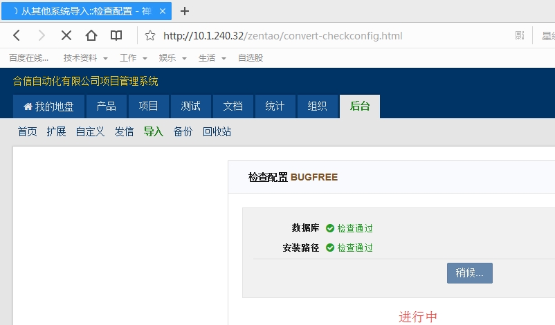 🍟 禅道目前只支持2.x系列版本的bugfree导入。其他版本的不支持。 还有请检查下之前的bugfree的数据量有多少。如果太多的话,可能会超时。 |