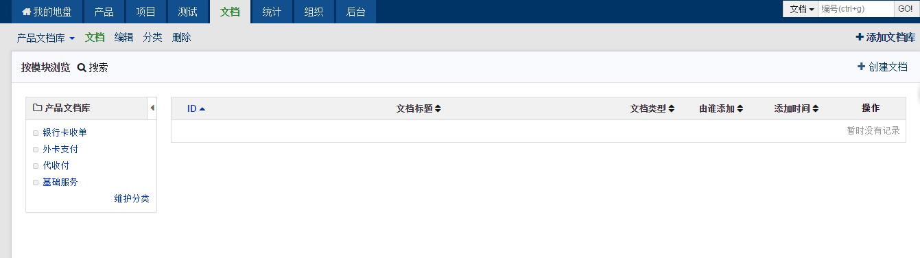 石洋洋2015/03/12 文档需要一个一个删除,禅道界面上的删除操作是标记删除,要彻底删除的话需要到数据库 zt_doc zt_doclib 表中删除数据。 |