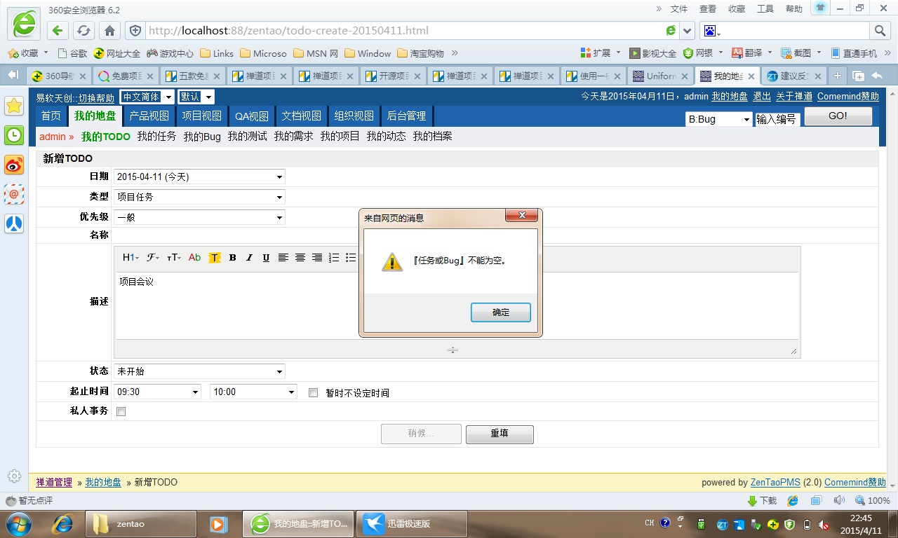 在我的TODO中,新增后项目类型选择’项目任务‘,名字不能输入导致系统不能保存