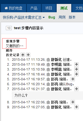 用户A在电脑A上提了BUG后,用户B去电脑B上编辑重现步骤和描述,保存之后, 步骤和描述都没有了;如图一、图二所示: