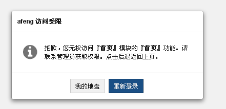 石洋洋2015-05-07 13:14:33 提示很清楚 没有 首页-首页的权限,到 组织-权限中检查一下是否分配这个权限,这个用户是否在分配了权限的分组中? |