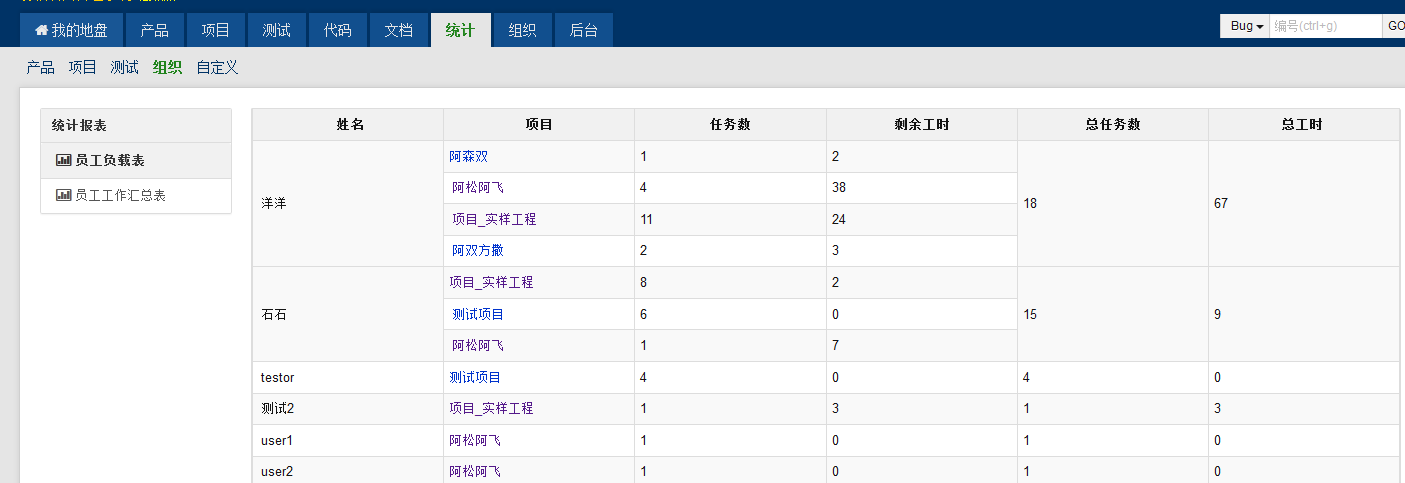 石洋洋2015-05-13 15:52:20 可以在 统计-组织-员工负载表 查看