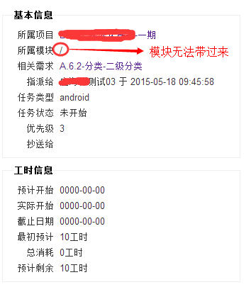 下图为点《任务-“测试2”》查看任务的详情,可以看到该任务没有将模块等信息带过来。