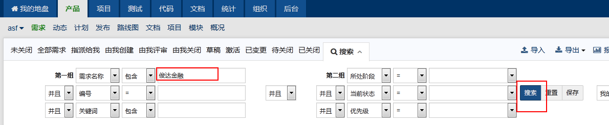 执行搜索时只能输入编号吗?不能按关键字搜索吗?比如,对于提过的需求,我知道那个需求中有“俊达金融”几个字,我想根据这几个字搜索出这个需求,不可以吗?
