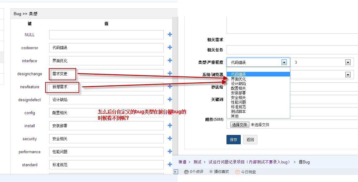 2923为什么在后台维护的bug类型,在前台提bug的时候看不到呢?已解决