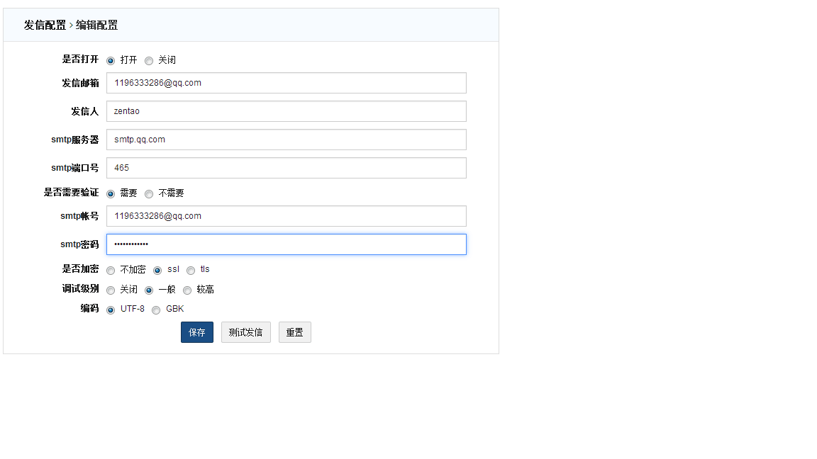 1、按手册的提示,配置邮箱发信如下,见图1;