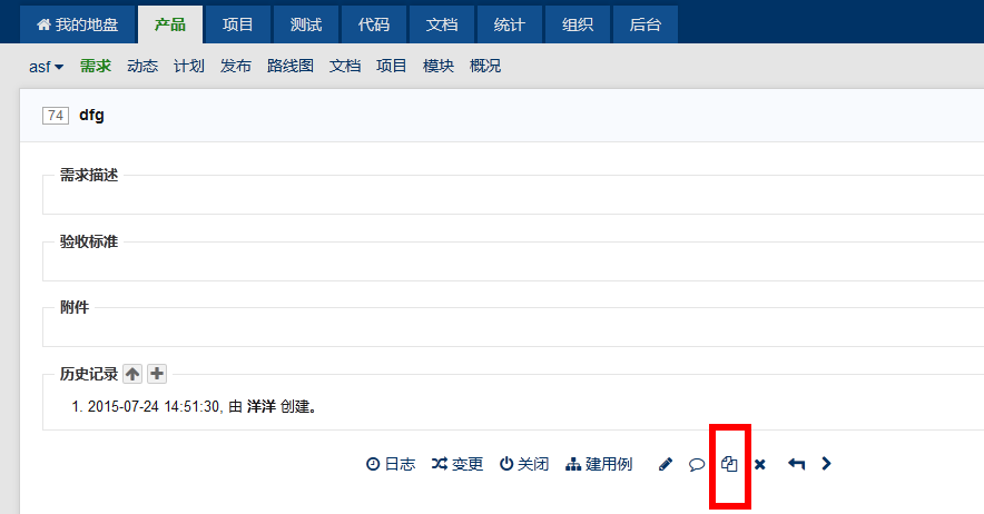 石洋洋2015/07/29 一直就有复制功能的,点击需求名称在详情页面可以看到: