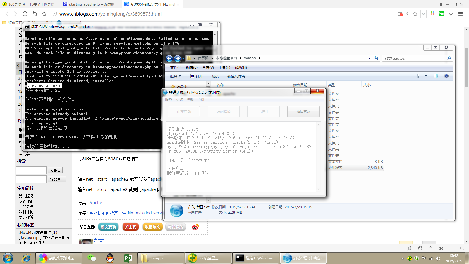 如图提示无法启动apache