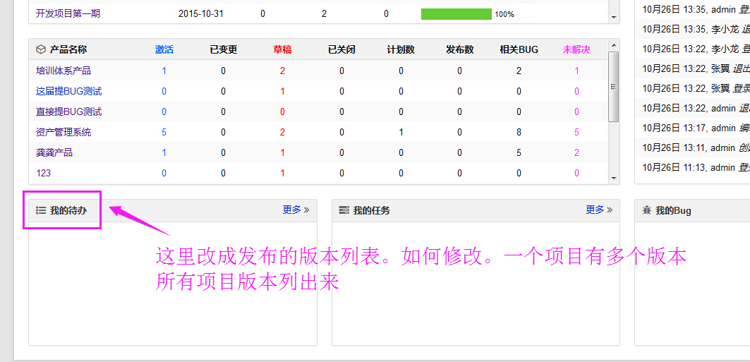 首页--我的待办---想改成发布的版本号。每个项目发布版本,这里都可以显示已解决