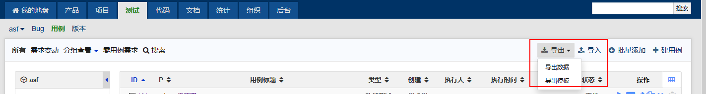 石洋洋2016-02-29 10:59:59 先到 测试-用例 右上角 导出-导出模版,在模版文件中填写数据后再导入禅道。