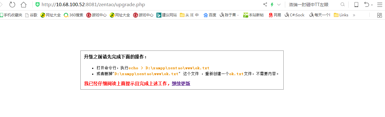 🚢 有按照提示在禅道服务器对应目录下创建文件吗? 如果已经创建,删除之前的文件,重新创建一个,注意确认下系统是否隐藏了文件的后缀名。 然后点击继续更新看下结果。 🎯 |