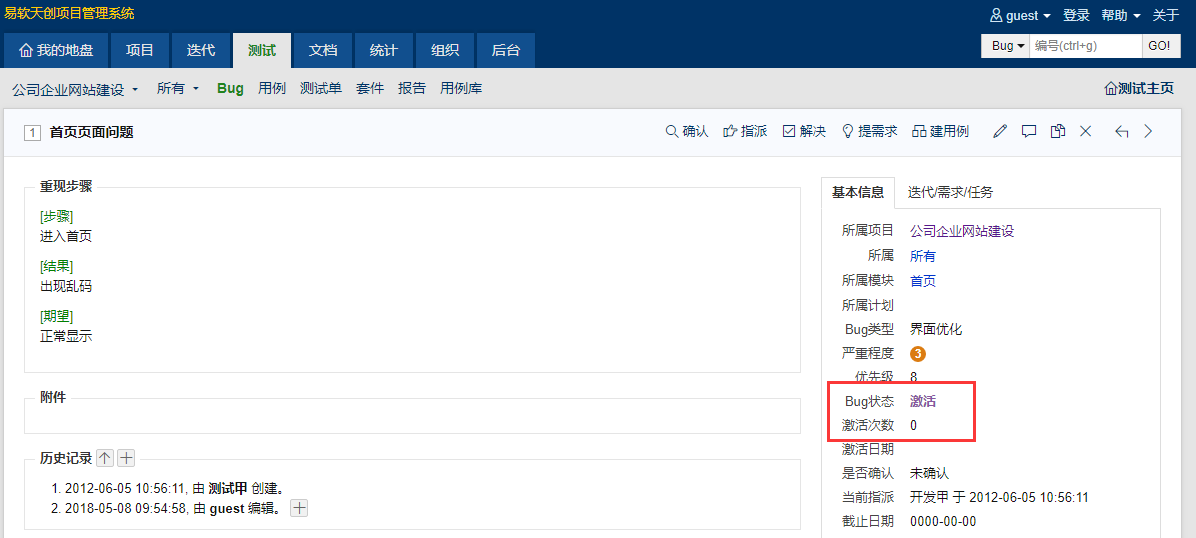 🚢 点击bug标题,在bug详情页面有激活按钮。 在bug-搜索,可以按照计划次数jinx搜索 专业版有自定义报表功能,bug激活率,可以使用sql语句查询后生成报表。 需要的话可以联系页面上方QQ进行试用专业版 |