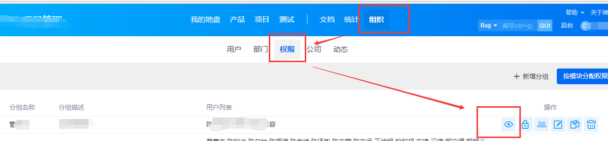 点击【组织】---【权限】---选择一条记录--【视图维护】,操作如下: