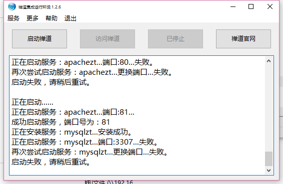 再次尝试启动服务:mysqlzt...更换端口...失败。