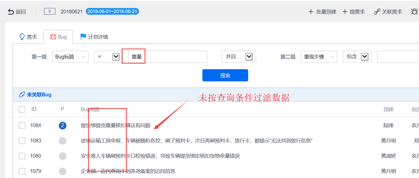 版本10.0.beta产品计划关联缺陷列表,不能按查询条件过滤数据