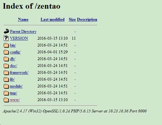 最终访问http://10.23.16.36:8000/zentao/www/才能正常访问,