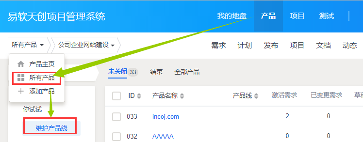 使用产品经理角色登录,第一次登录创建产品能看到有一个“维护产品线”的链接,第二次以后登录就再也找不到“维护产品线”的链接了,这是怎么回事呢?在哪里能找到“维护产品线”的入口?