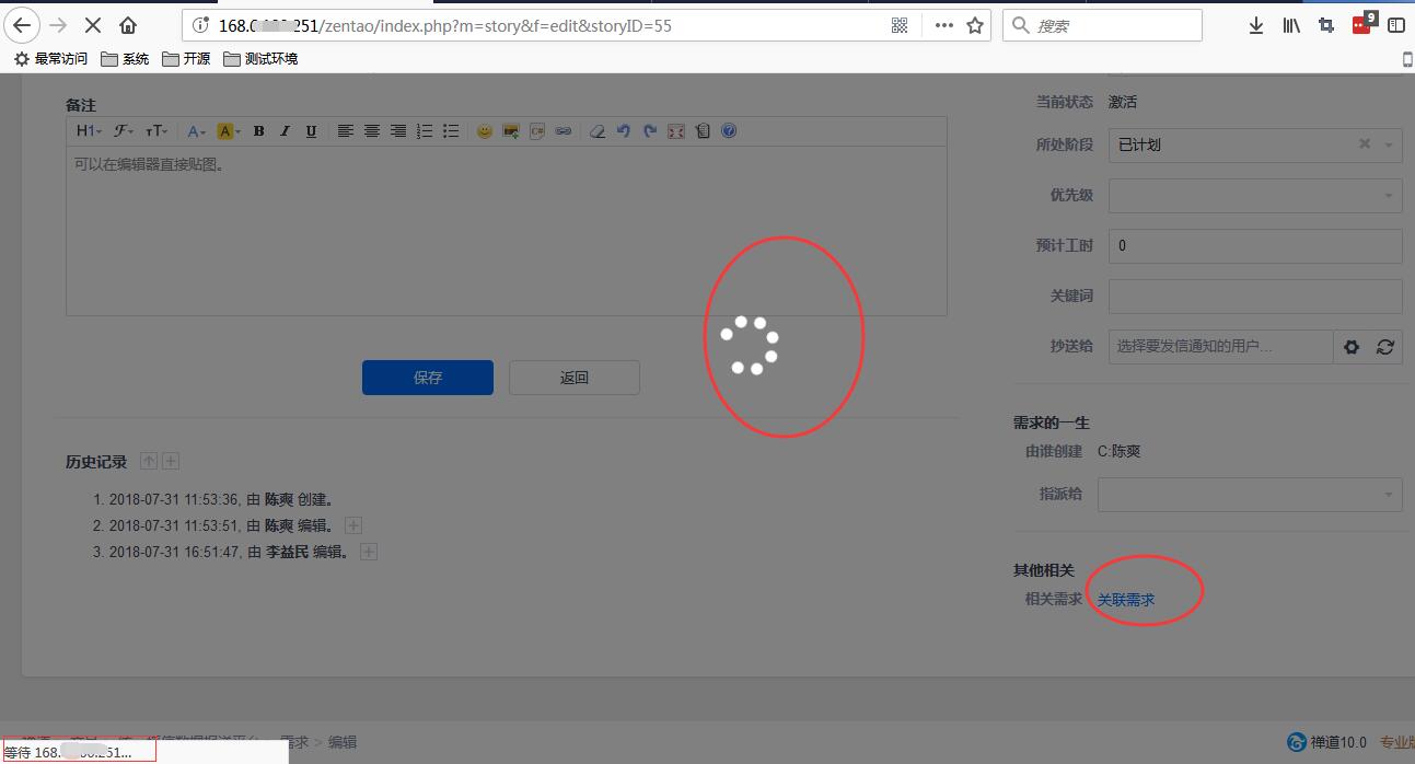 点“关联需求”后,圆圈一直在转,页面没有加载。已解决