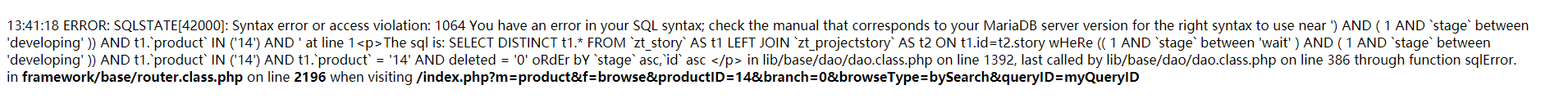 点击搜索,直接报出如下错误。你们居然还有sql错误没有被catch。无法想象。