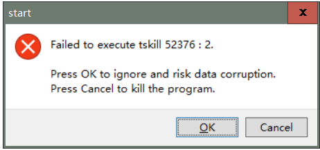 双击start.exe弹出报错Failed to execute tskill 52376:2已解决