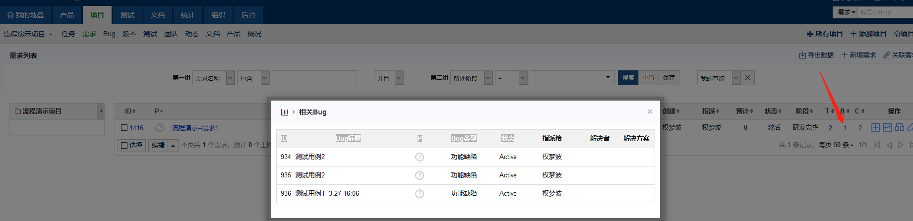 需求后面提示的bug数量是1,点击1之后看到的是三个Bug。而且实际的确是有3个Bug,那么需求后面的提示1就是错误的?