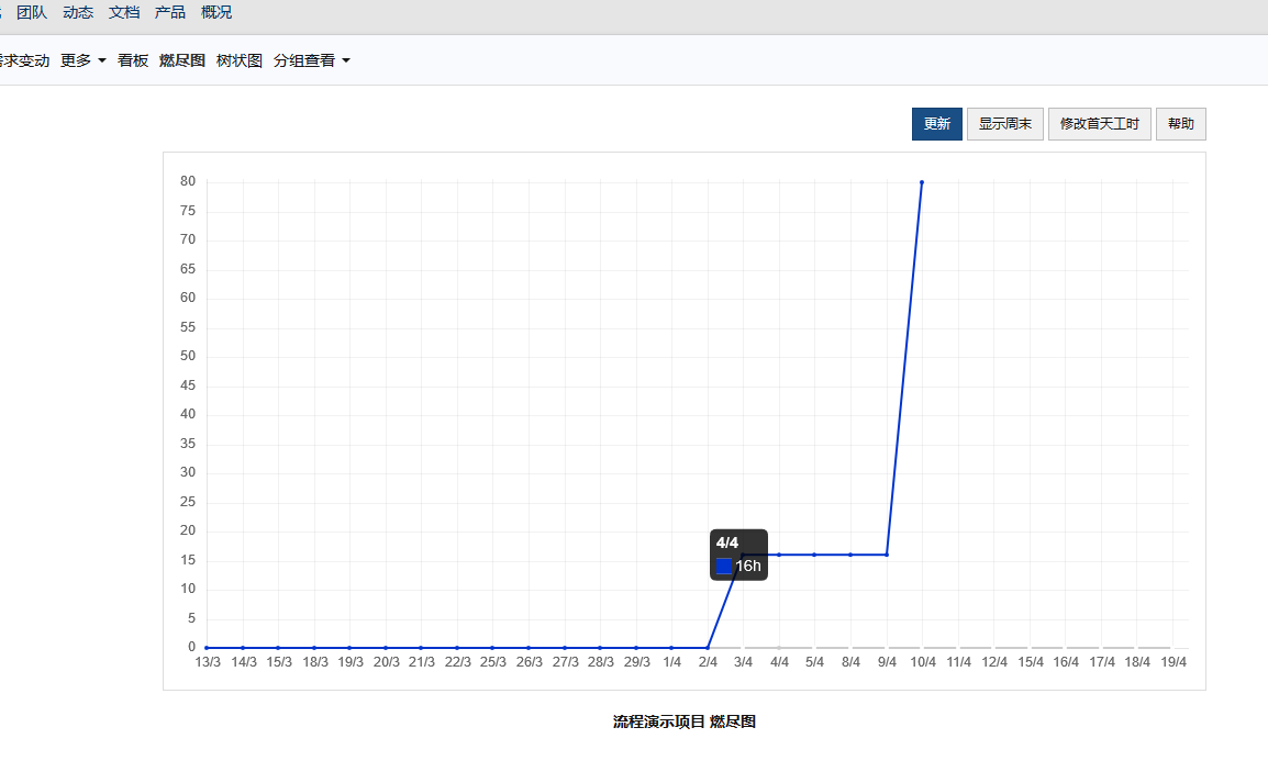 禅道-李锡碧2019-04-10 16:42:41 燃尽图: 确认下3.13日就维护预计工时了吗?可以试试点击下修改首天工时。 |