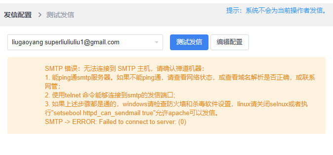 发送测试邮件失败已解决