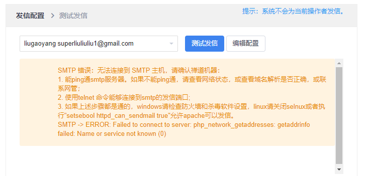 服务器是能够ping通的 但是发信失败