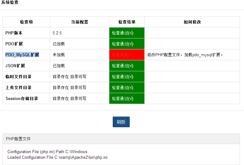 安装禅道软件时,检查PDO_MySQL扩展项失败,如下图: