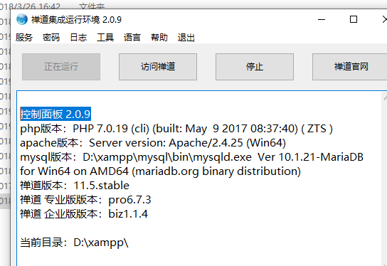 控制面板版本依旧是2.0.9,无法开启禅道客户端版的服务器功能XXD