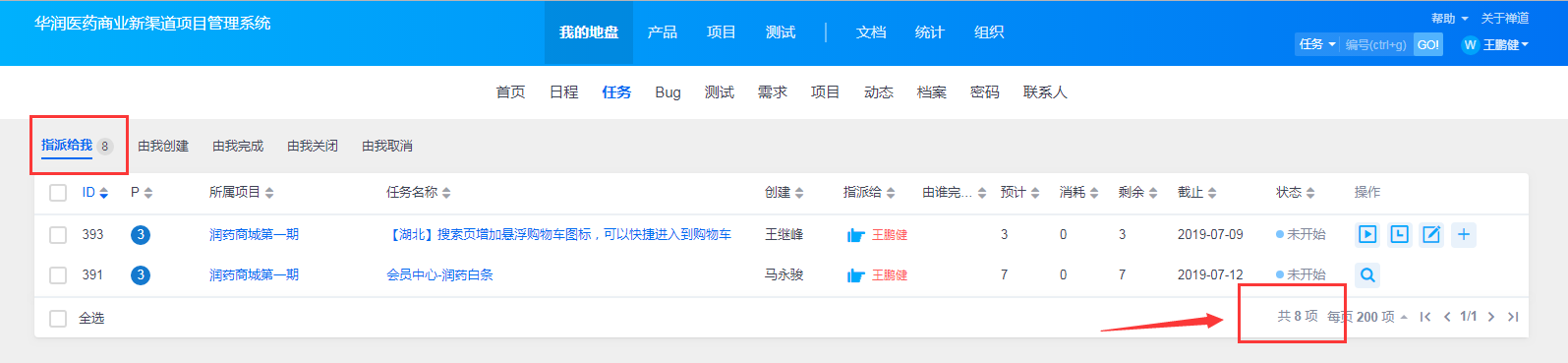 在我的地盘--任务页面,明明有8条任务,但是列表中只显示2条