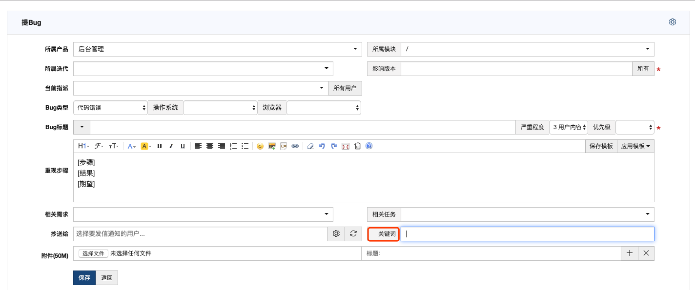提交bug页面,“关键词”字段用来填写什么内容的已解决