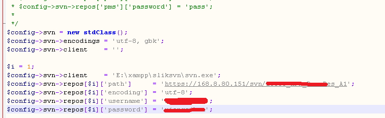 我在使用windows一键安装包部署禅道开源版11.6,在集成SVN的时候:config.php文件配置如下: