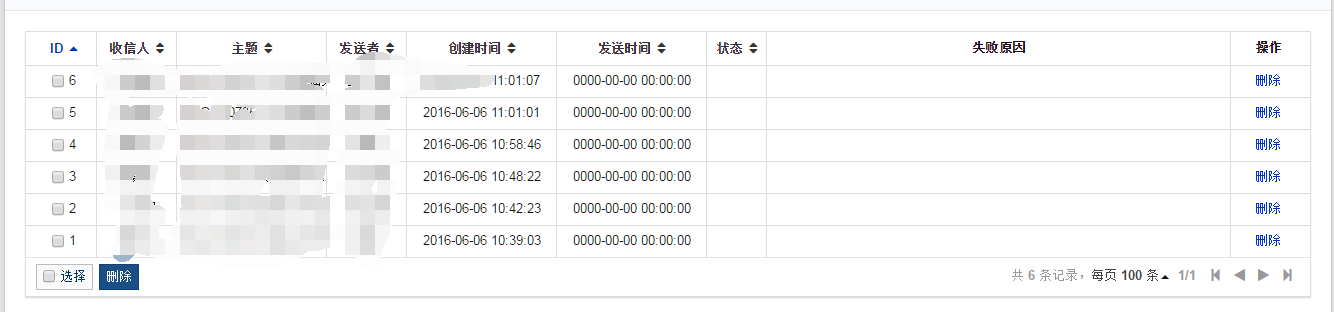 如图,在邮件列表里看到待发的邮件,从发送时间列可以看到,邮件都没有被发送。